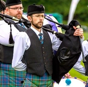 Chris has played in pipe bands most of his life, starting at age 8 and he still enjoys competing with the region's only competing pipe band, East Ayrshire Caledonia. He also takes lessons with a former World Champion to prepare him for solo competition, heighten his level of performance and become a better student. He wants you all to know that "The learning never ends!"
